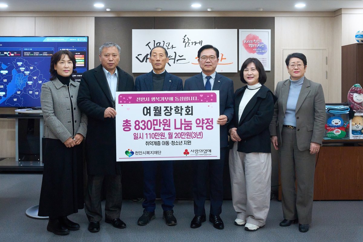 김석필 천안시장 권한대행 부시장은 “지역의 미래인 아동과 청소년을 위해 따뜻한 나눔을 실천해 주셔서 감사드린다”며 “민간과의 협력을 통해 도움이 필요한 아이들이 건강하게 성장할 수 있도록 촘촘한 복지안전망을 만들어 갈 것”이라고 말했다.