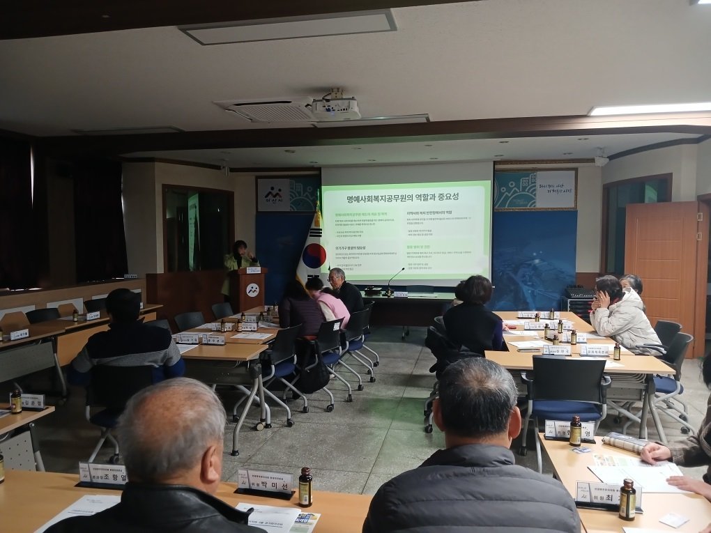 주민자치회 위원들이 명예사회복지공무원으로서 수행해야 할 역할과 위기가구 발굴 방법을 중심으로 진행됐으며 경제적 어려움 건강 문제 사회적 고립 등 다양한 위기 상황에 놓인 가구의 특징과 징후, 일상 속 관찰을 통한 조기 발견 방법 등을 공유했다.