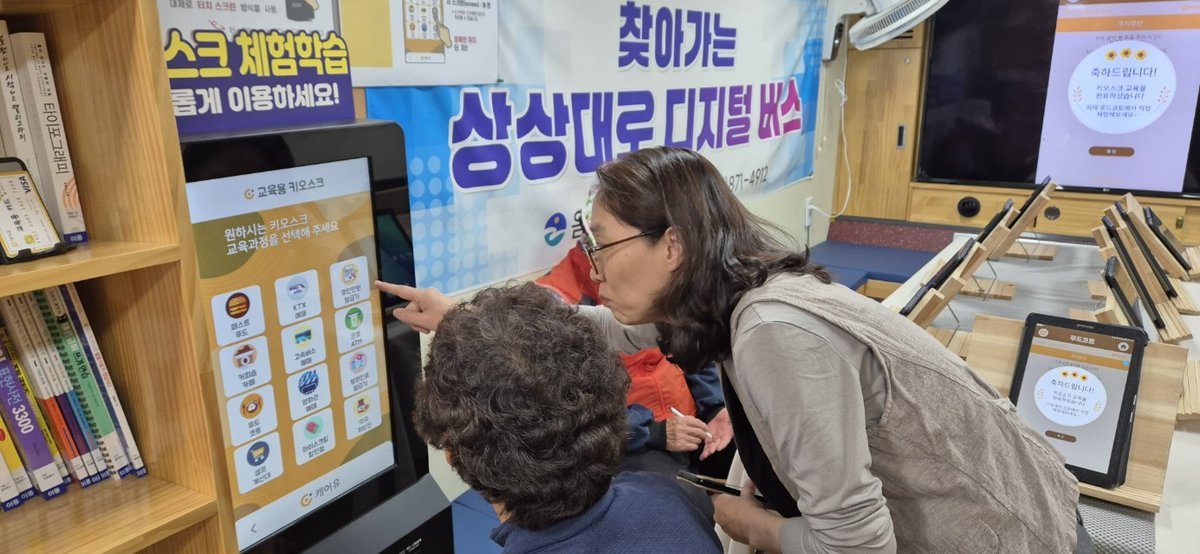 상상대로 디지털버스는 주요 마을을 직접 찾아가 디지털 취약계층을 대상으로 키오스크 체험 등 실생활에 도움이 되는 다양한 교육을 제공하는 이동형 디지털 교육 서비스다.