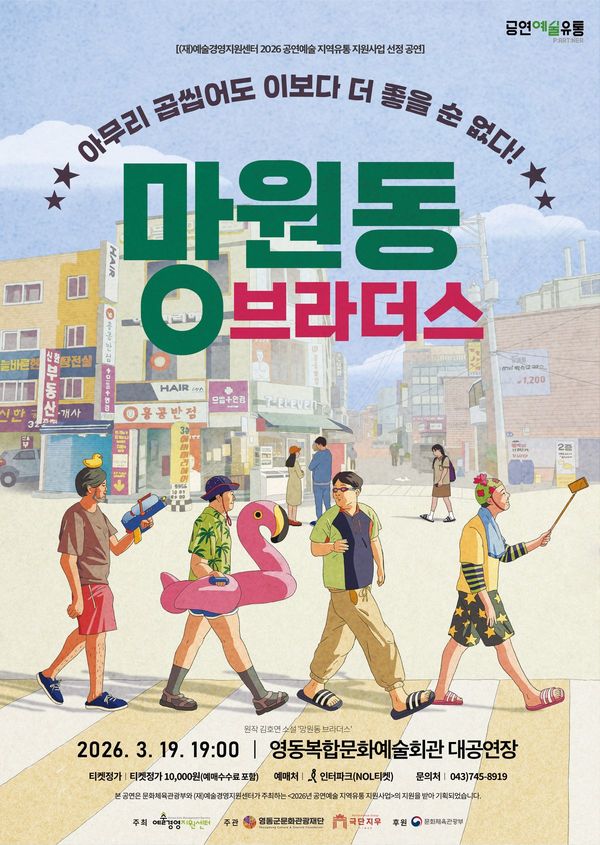 [충청중심뉴스] 영동군문화관광재단은 2026년 공연예술 지역유통사업 선정작인 연극 ‘New 망원동 브라더스’를 오는 19일 오후 7시 영동복합문화예술회관에서 선보인다고 밝혔다.