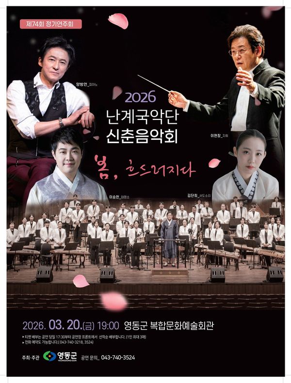군 관계자는 “난계국악단 신춘음악회를 통해 군민들이 봄의 시작을 국악과 함께 즐기며 따뜻한 감동을 느끼는 시간이 되길 바란다”며 “앞으로도 다양한 국악 공연을 통해 전통문화의 매력을 널리 알리겠다”고 말했다.