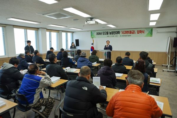 [충청중심뉴스] 단양군은 지난 13일 농업기술센터에서 지역 농업을 선도할 전문 농업인 양성을 위한 ‘2026년 단고을농업인대학’사과반 입학식을 개최하고 8개월간의 중급과정 운영에 들어갔다고 밝혔다.