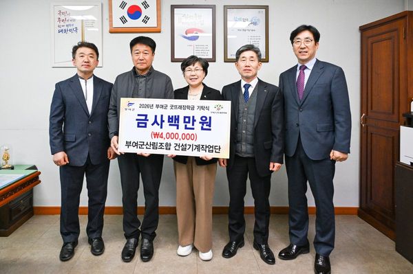 [충청중심뉴스] 부여군산림조합 건설기계작업단은 지난 16일 산림조합 임원진들과 부여군청을 방문해 지역인재 육성을 위한 장학금 4백만원을 부여군굿뜨래장학회에 기탁했다.