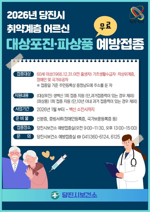 [충청중심뉴스] 당진시는 2026년 건강취약계층 예방접종 지원사업을 확대 운영한다고 17일 밝혔다.
