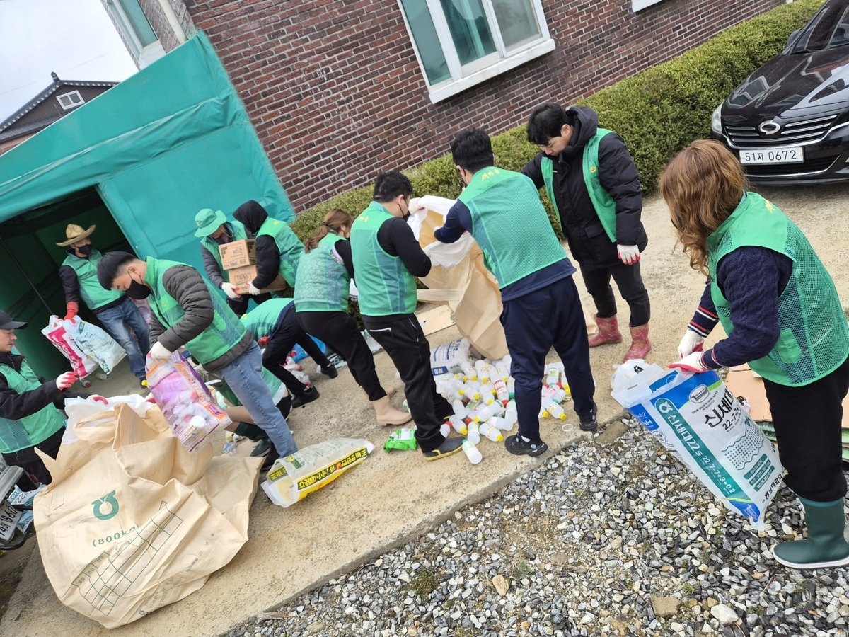 이번 활동에는 회원 10여명이 참여해 마을 주변과 농경지 일대에 방치된 농약 빈 병을 수거하고 분리 재활용 작업을 실시했다.