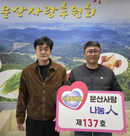 [충청중심뉴스] 문산면 문산사랑후원회는 지난 17일 이웃사랑 실천을 위해 성금 100만원을 기탁한 한일건설 박성구 대표를 ‘문산사랑나눔인 137호’로 선정했다.