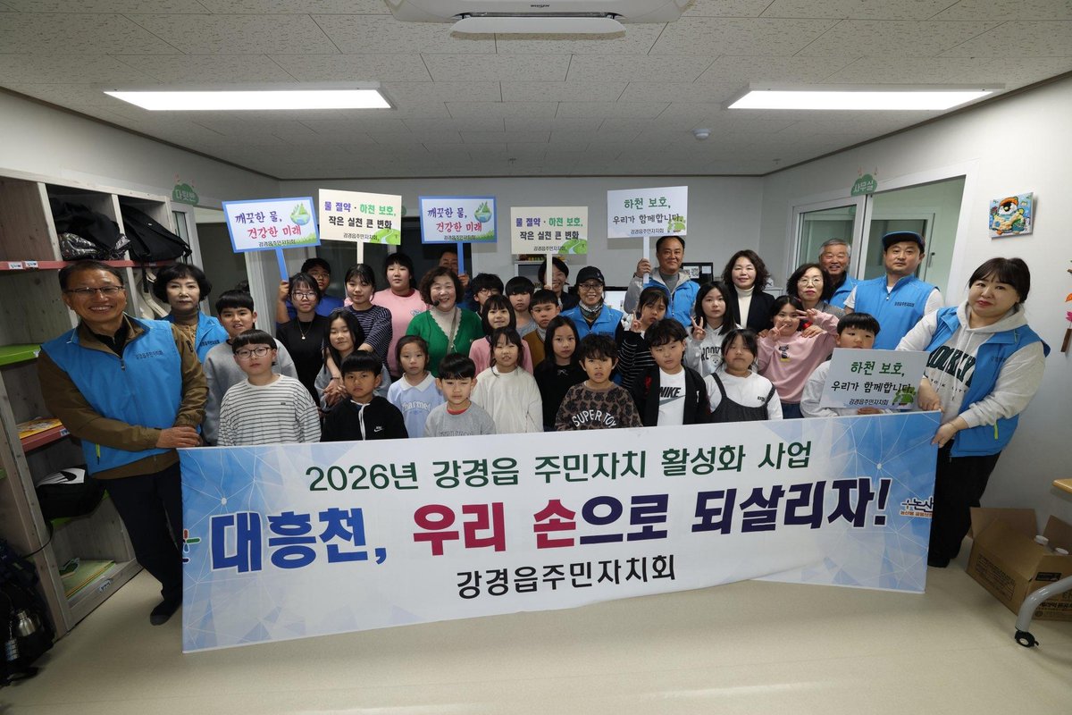 이번 행사는 2026년 강경읍 주민자치 활성화 사업인 ‘대흥천 수질 정화 환경캠페인’의 일환으로 강경읍 주민자치회 위원 30명과 강경읍 관내 지역아동센터 아동 50명 등 총 80명이 참여해 지역 하천 수질 개선과 자연 생태 회복을 위한 친환경 활동에 힘을 모았다.