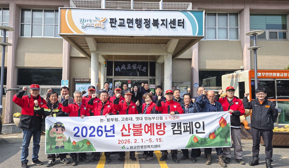 한편 판교면은 앞으로도 기관 단체와의 긴밀한 협력을 통해 산불 취약 시기 집중 홍보와 캠페인 활동 등 예방 중심의 산불 대응을 지속적으로 추진해 나갈 방침이다.