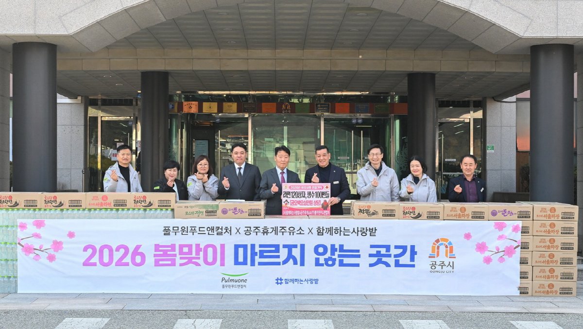 시에 따르면, 지난 20일 시청 상황실에서함께하는사랑밭과 공주휴게소, 풀무원푸드앤컬처 관계자들이 참석한 가운데 취약계층 지원을 위한 물품 기탁식이 열렸다.