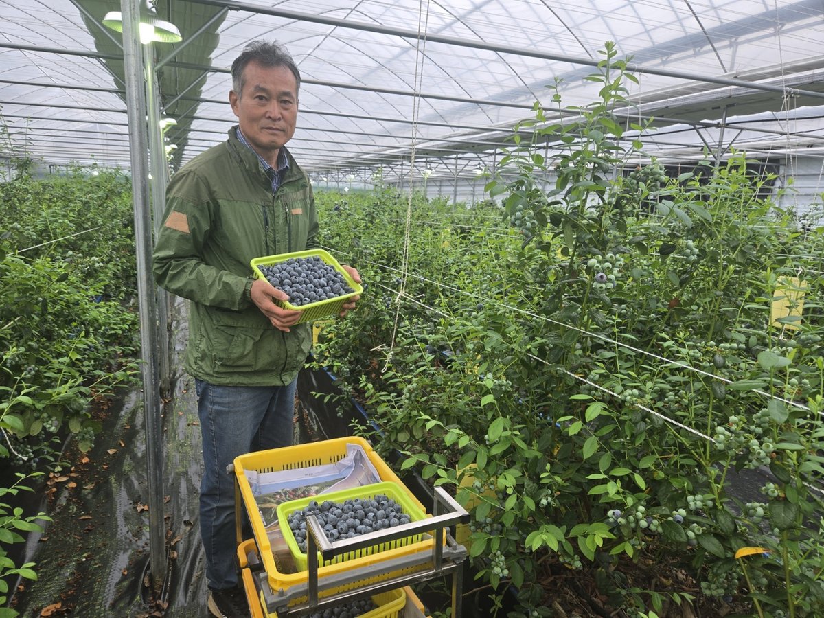 첫 출하는 지난달 25일 이뤄졌으며 출하한 블루베리는 1 당 약 10만원 선에 판매되고 있다.