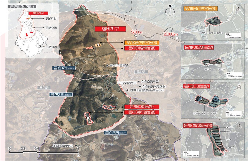 마지막으로 괴산군 청안면 금신 지구는 정비형으로 3년간 사업이 추진되며 사업비 50억원을 투입해 돈사 3개소, 우사 1개소를 철거하고 연계사업으로 청년 농촌 보금자리 조성 사업을 추진할 계획이다.