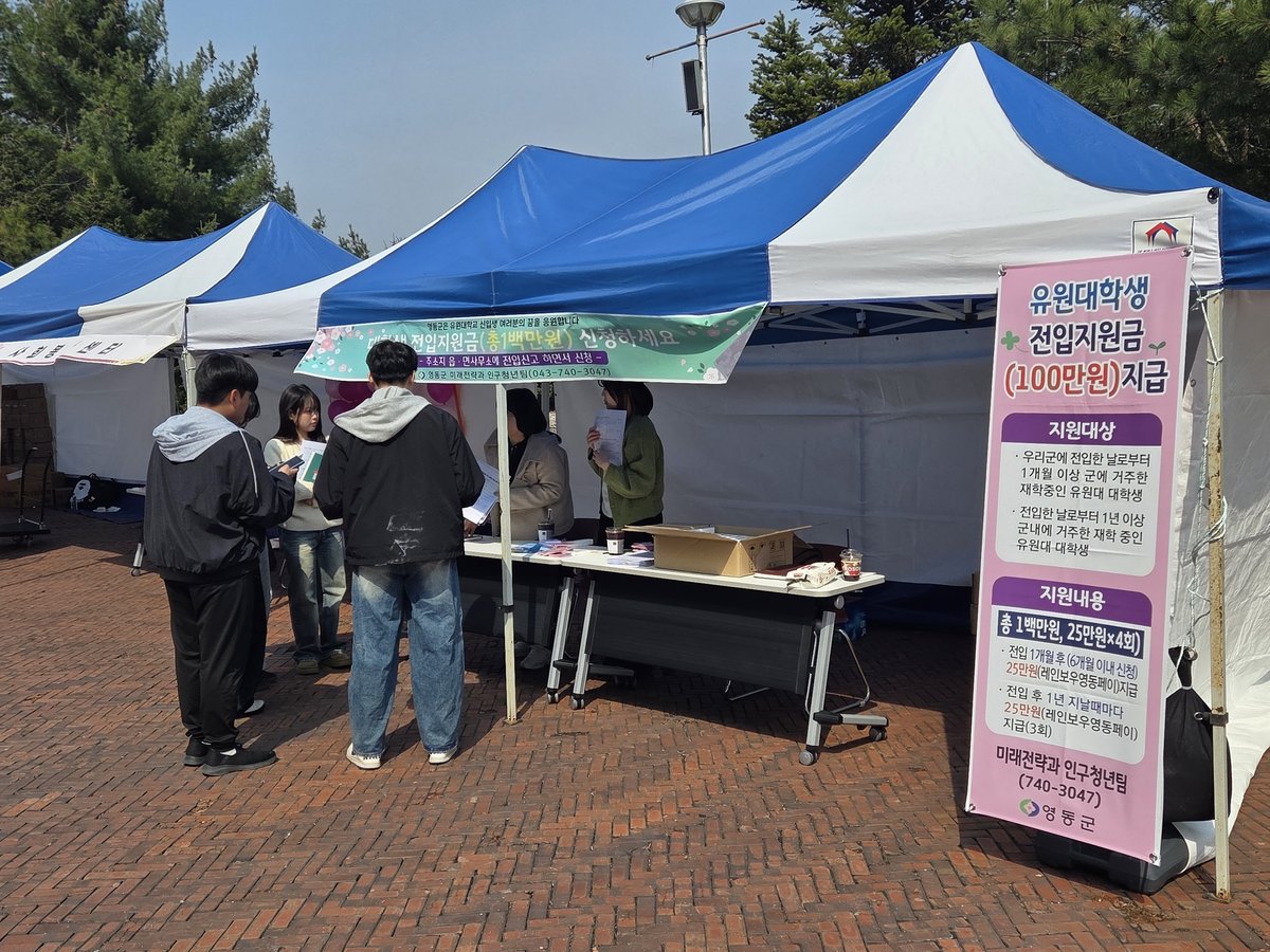 군 관계자는 “대학생들이 4년간 영동군에 머무르면서 지역을 경험하고 애착을 가질 수 있도록 돕는 것이 중요하다”며 “앞으로도 학생들이 체감할 수 있는 실질적인 지원과 홍보를 지속적으로 확대해 나가겠다”고 말했다.