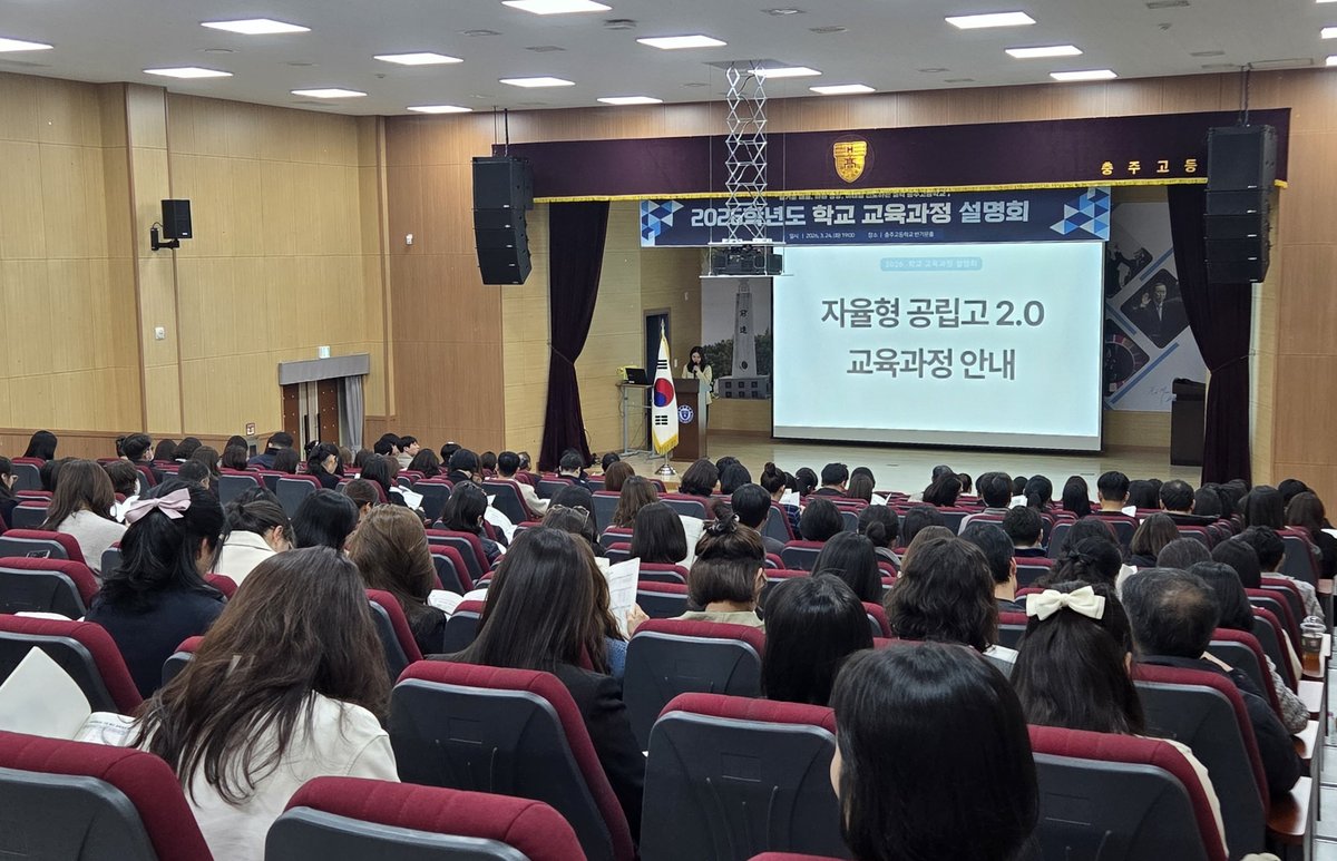 [충청중심뉴스] 충주고등학교는 24일 19시 교내 반기문홀에서 학부모 200여명이 참석한 가운데 ‘2026학년도 학교 교육과정 설명회’를 개최하고 자율형 공립고 2.0 운영 방향과 학교 특색 교육과정을 안내했다고 밝혔다.