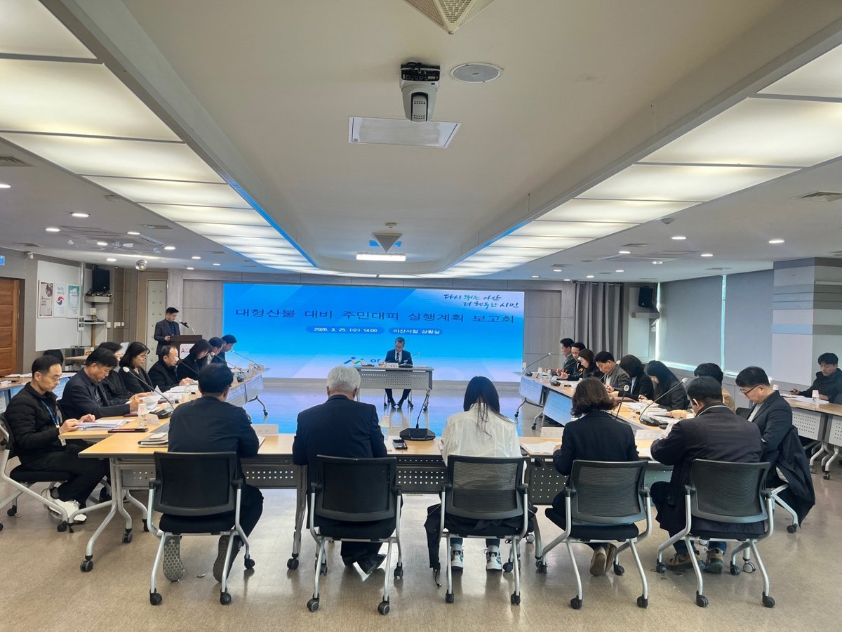 [충청중심뉴스] 아산시는 25일 시청 상황실에서 대형산불 대비 주민대피 실행계획 보고회 를 개최하고 대형산불 발생 시 신속하고 체계적인 주민대피 방안을 집중 점검했다.