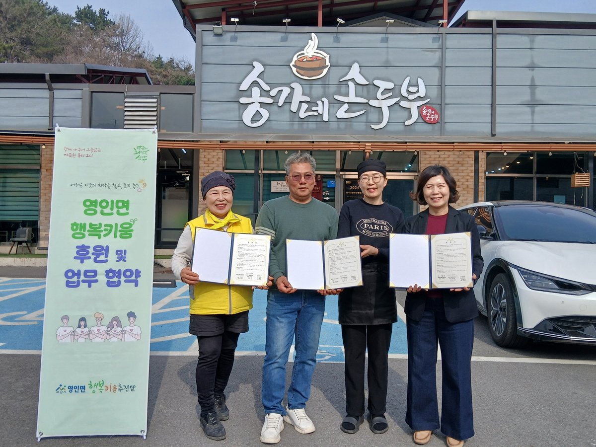 [충청중심뉴스] 아산시 영인면 행복키움추진단은 지난 25일 영인면 소재 송가네손두부와 저소득 소외계층 어르신 지원을 위한 행복키움 업무협약을 체결했다.