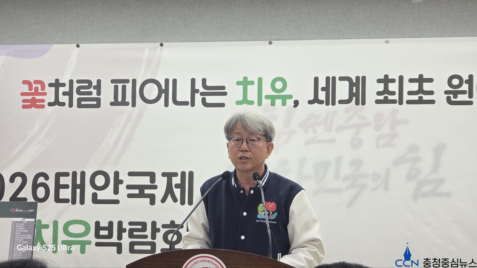 [충청중심뉴스] 태안국제원예치유박람회조직위원회 오진기 사무총장은 26일 충남도청 프레스센터에서 '2026 태안국제원예치유박람회 D-30 준비상황 기자회견'을 열고 준비상황 보고와 질의응답을 통해 주요 추진 내용을 공유하며 언론과의 소통을 강화했다.