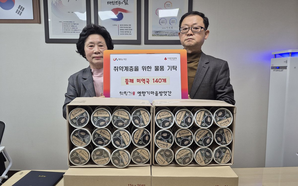 이번 협약을 통해 마을기업 옛향기마을방앗간은 분기별로 지역사회 취약계층을 위한 물품을 지원할 예정이며, 협약식 이후 동결건조 들깨미역국 140개를 기탁하여 해당 물품을 지역사회 내 도움이 필요한 주민들에게 전달하고 복지사업에 활용할 계획이다.