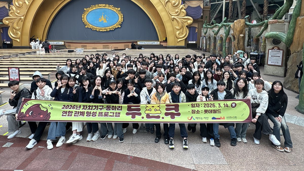 [충청중심뉴스] 서산문화복지센터는 지난 3월 14일 센터 소속 자치기구 및 동아리 청소년 115명과 함께 서울 롯데월드에서 진행한 연합 관계 형성 프로그램 '두.쫀.쿠'가 청소년들의 열띤 참여 속에 성공적으로 마무리됐다고 밝혔다.