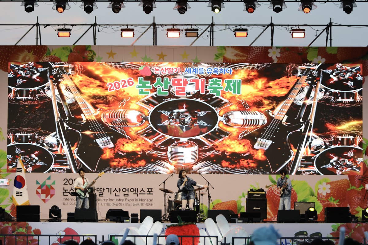 [충청중심뉴스] 충남콘텐츠진흥원이 운영하는 충남음악창작소에서 발굴한 지역 뮤지션 '차잔밴드'가 논산딸기축제 폐막식 무대에 올라 축제의 마지막을 성황리에 장식했다.