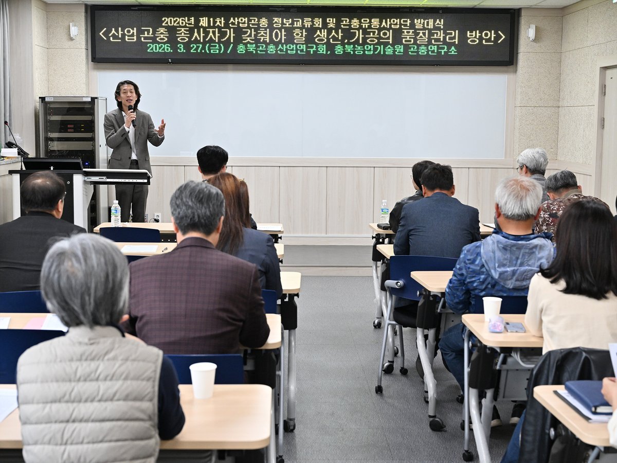 [충청중심뉴스] 충북농업기술원은 지난 3월 27일 곤충연구소에서 도내 곤충산업의 품질관리 기준을 확립하고 현장 선도 농가를 육성하기 위한 '산업곤충 리더 양성 정보교류회'를 개최했다고 밝혔다.