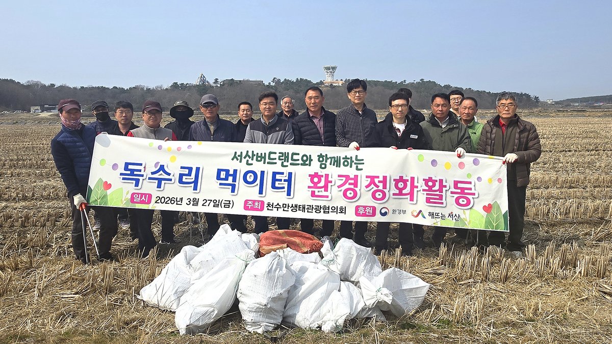 천수만 생태관광협의회에서는 지난해부터 지역 주민들이 자체적으로 독수리 먹이터의 청소활동을 시작했으며 서산버드랜드에서도 적극적으로 동참하면서 연례행사로 이어지고 있다.