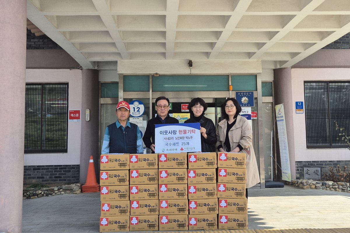 이번 기탁은 지역 노인들의 식생활 지원과 일상 속 나눔 실천을 위해 마련된 것으로 전달된 국수 세트는 각 경로당에 배부돼 이용 주민들의 식사에 보탬이 될 것으로 기대된다.