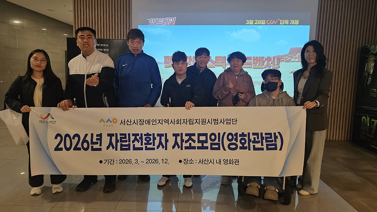 [충청중심뉴스] 서산시는 장애인이 지역에서 자립할 수 있도록 주거지원과 일상생활 지원 등을 포함한 '장애인지역사회자립지원시범사업'을 추진하고 있으며 장애인지역사회자립지원시범사업단은 3월 28일 서산시 CGV에서 자립전환자 대상으로 1분기 자조모임을 개최했다.