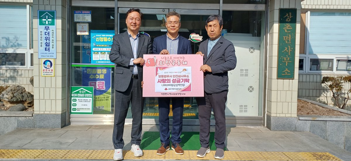 [충청중심뉴스] 안진삼 법무사무소가 지역 내 어려운 이웃들을 위해 사용해 달라며 상촌면지역사회보장협의체에 성금 100만원을 기탁하며 네 번째 기부천사가 탄생해 지역사회에 따뜻한 나눔이 이어지고 있다.