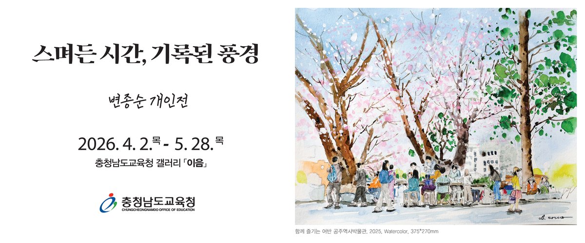 [충청중심뉴스] 충남교육청은 오는 4월 2일부터 5월 28일까지 충남교육청 별관 1층 갤러리 이음에서 변종순 작가의 첫 개인전 '스며든 시간, 기록된 풍경'을 개최한다고 밝혔다.