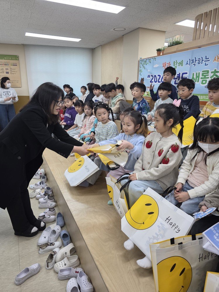 특히 입학한 1학년 신입생은 물론, 전입생이 많고 학생 수가 많은 2학년 175명을 포함한 저학년 학생 총 255명 전원에게 '생애 첫 책 꾸러미'를 전달해 의미를 더했다.