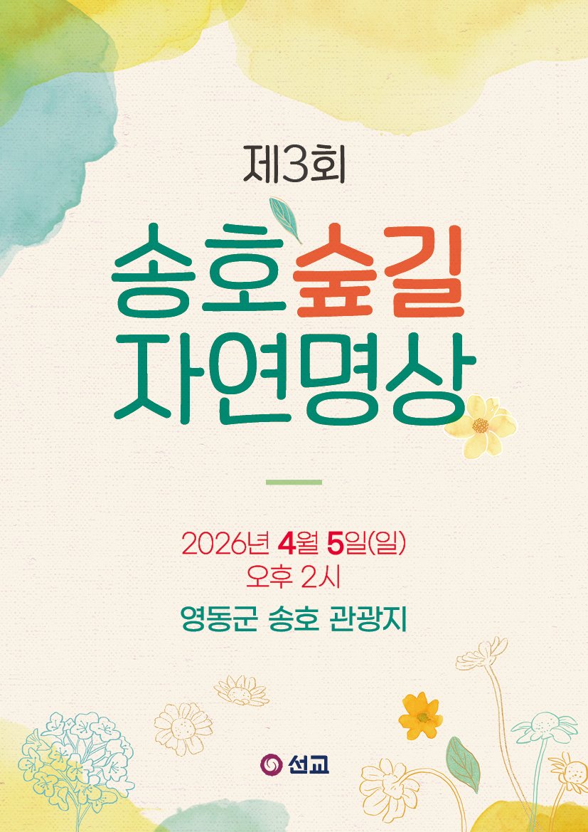 [충청중심뉴스] 선도문화의 성지이자 충북 영동의 명소인 선교 본원 국조전이 오는 4월 5일 영동군 양산면 송호 관광지에서 '제3회 송호숲길 자연명상'행사를 개최한다고 밝혔다.