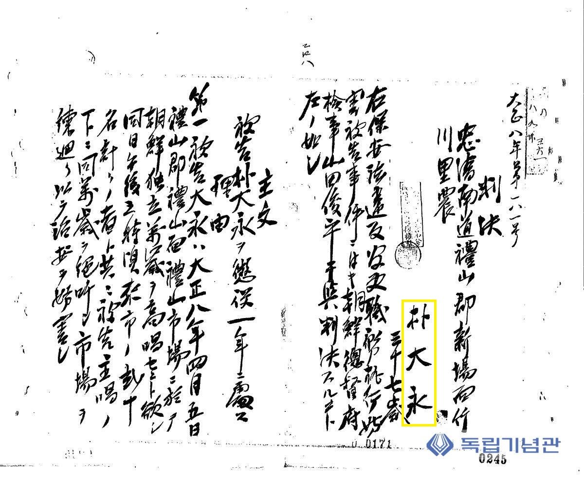 박대영 선생은 신양면 죽천리 출신으로 1919년 4월 5일 예산 장터에서 전개된 독립만세운동을 주도하며 지역 항일운동의 중심적 역할을 수행한 인물이다.