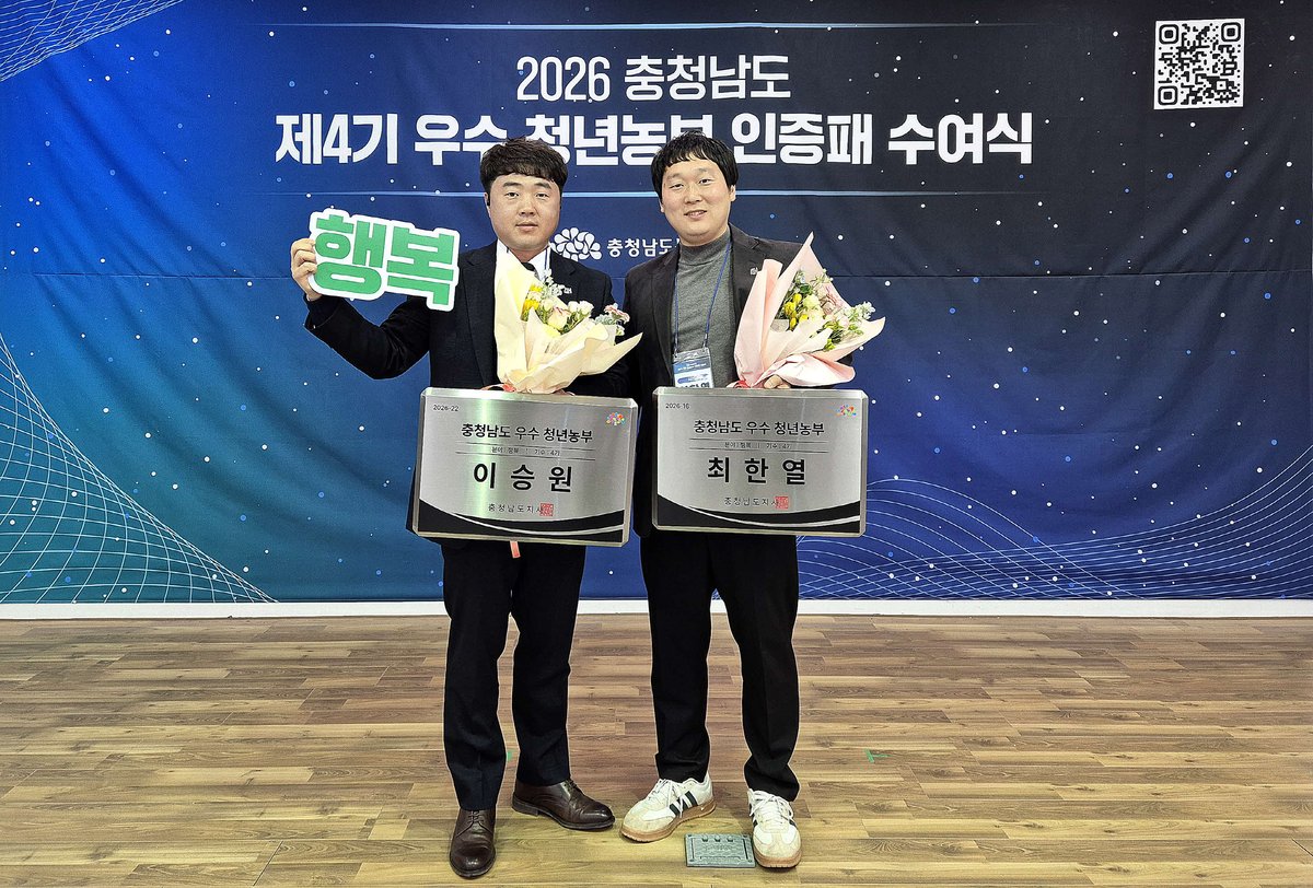 김도형 서천군농업기술센터 소장은 “이번 수상은 서천 농업의 미래가 밝다는 것을 보여주는 뜻깊은 성과”며 “앞으로도 청년농업인이 안정적으로 정착하고 성장할 수 있도록 적극 지원하겠다”고 말했다.