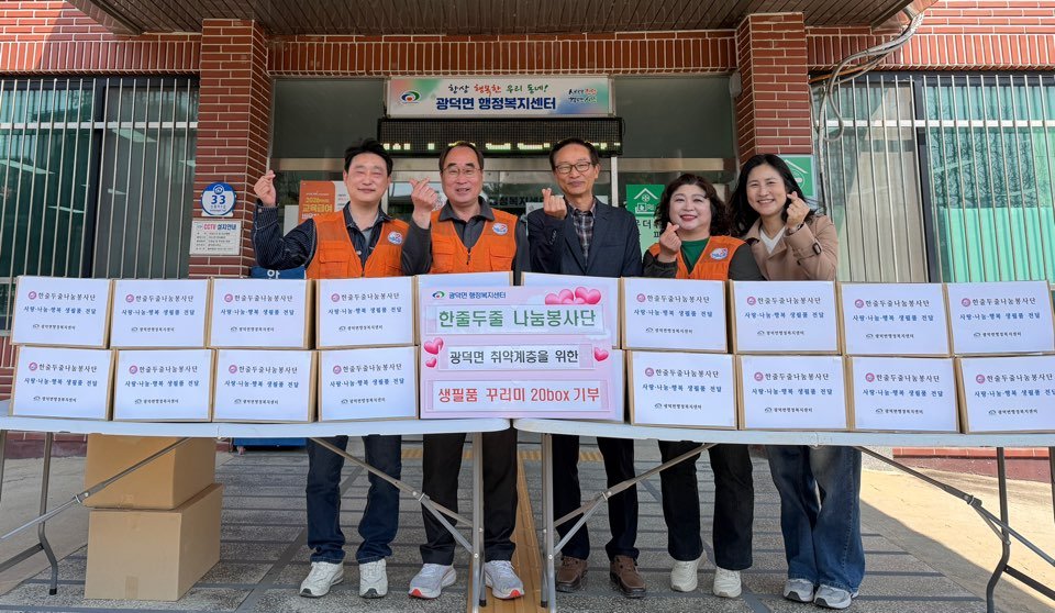 이건영 광덕면장은 “매번 정성을 가득 담아 지역 내 어르신들을 살펴주셔서 감사드린다”며 “따뜻한 마음을 담아 필요한 가정에 소중히 전달할 것”이라고 말했다.
