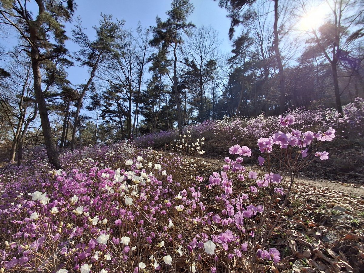 특히 일반적인 분홍 진달래 사이사이에 피어난 순백의 백진달래는 등산객들에게 색다른 볼거리를 선사하고 있으며 산책로 주변에 함께 식재된 철쭉과 맥문동이 4월 말부터 차례로 꽃망울을 터뜨려 봄 내내 끊이지 않는 꽃길을 선사할 예정이다.