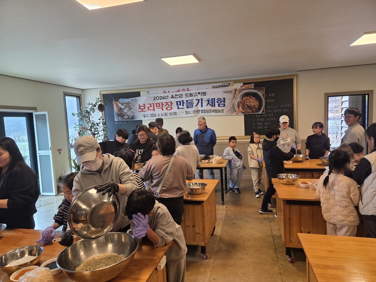 [충청중심뉴스] 옥천군은 드림스타트 아동과 가족을 대상으로 군서면 별빛담은체험농장에서 보리막장 만들기 프로그램을 운영했다.