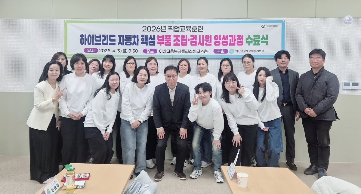 [충청중심뉴스] 아산시와 아산여성새로일하기센터는 지난 3일 지역 특화 전략 산업 맞춤형 교육인 ‘하이브리드 자동차 핵심 부품 조립 검사원 양성 과정’ 수료식을 개최했다.