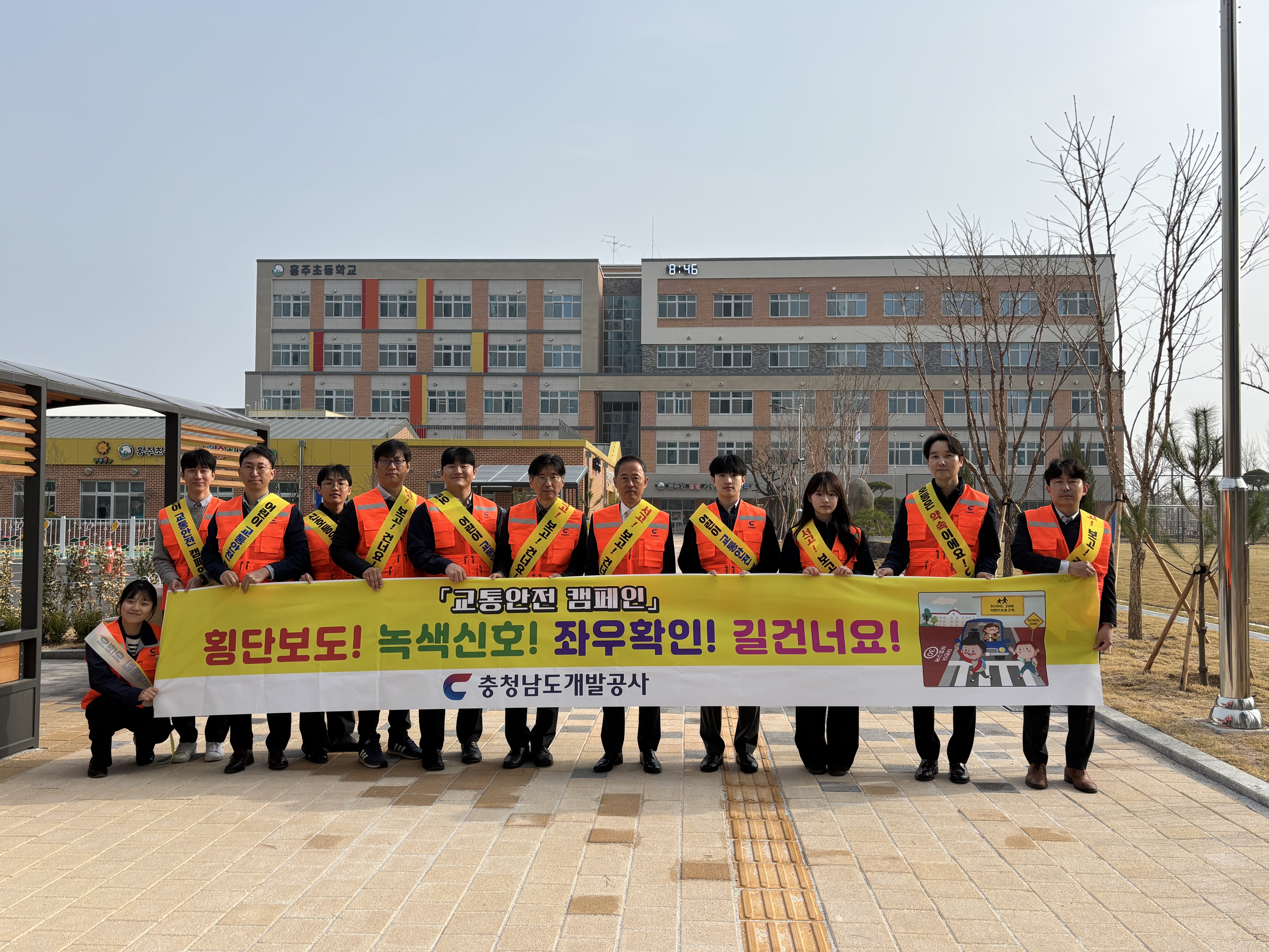 충남개발공사 임직원 10여명이 참여해 어린이들에게는 안전한 보행을 유도하였으며, 운전자들에게는 스쿨존 내 감속 운행과 교통법규 준수를 당부했다.