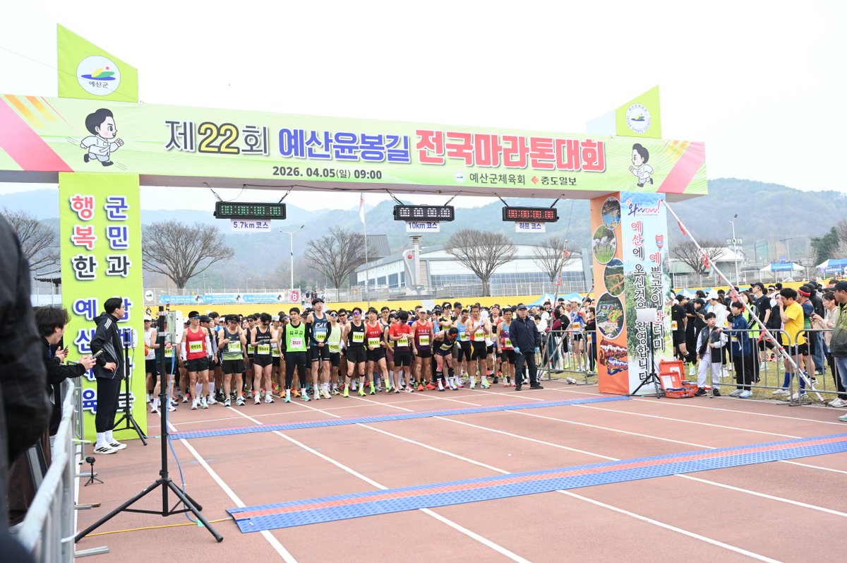 대회는 5.7, 10, 하프 등 3개 종목으로 나뉘어 진행됐으며 참가자들은 예산군 종합운동장을 출발해 벚꽃이 만개한 벚꽃로 일원을 왕복하며 봄의 정취를 만끽했다.