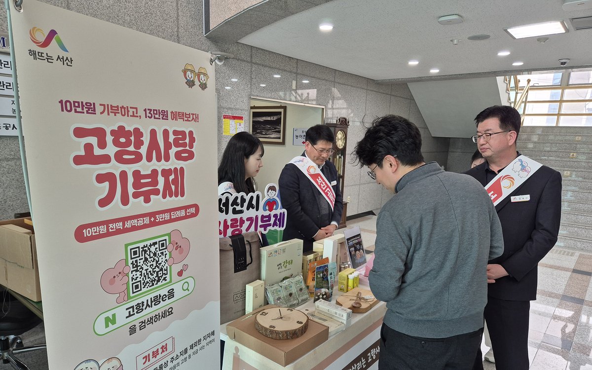 서산시 관계자는 "고향사랑기부제는 지역을 위한 따뜻한 나눔과 함께 세액공제, 답례품 혜택까지 누릴 수 있는 제도"라며 "앞으로도 공공기관과 유관단체 대상 홍보를 확대해 참여를 적극 이끌겠다"고 밝혔다.