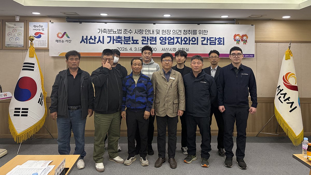 [충청중심뉴스] 충남 서산시는 3일 가축분뇨의 적정 처리와 자원화 활성화를 위해 관내 가축분뇨 관련 영업자를 대상으로 간담회를 개최 소통의 시간을 가졌다.