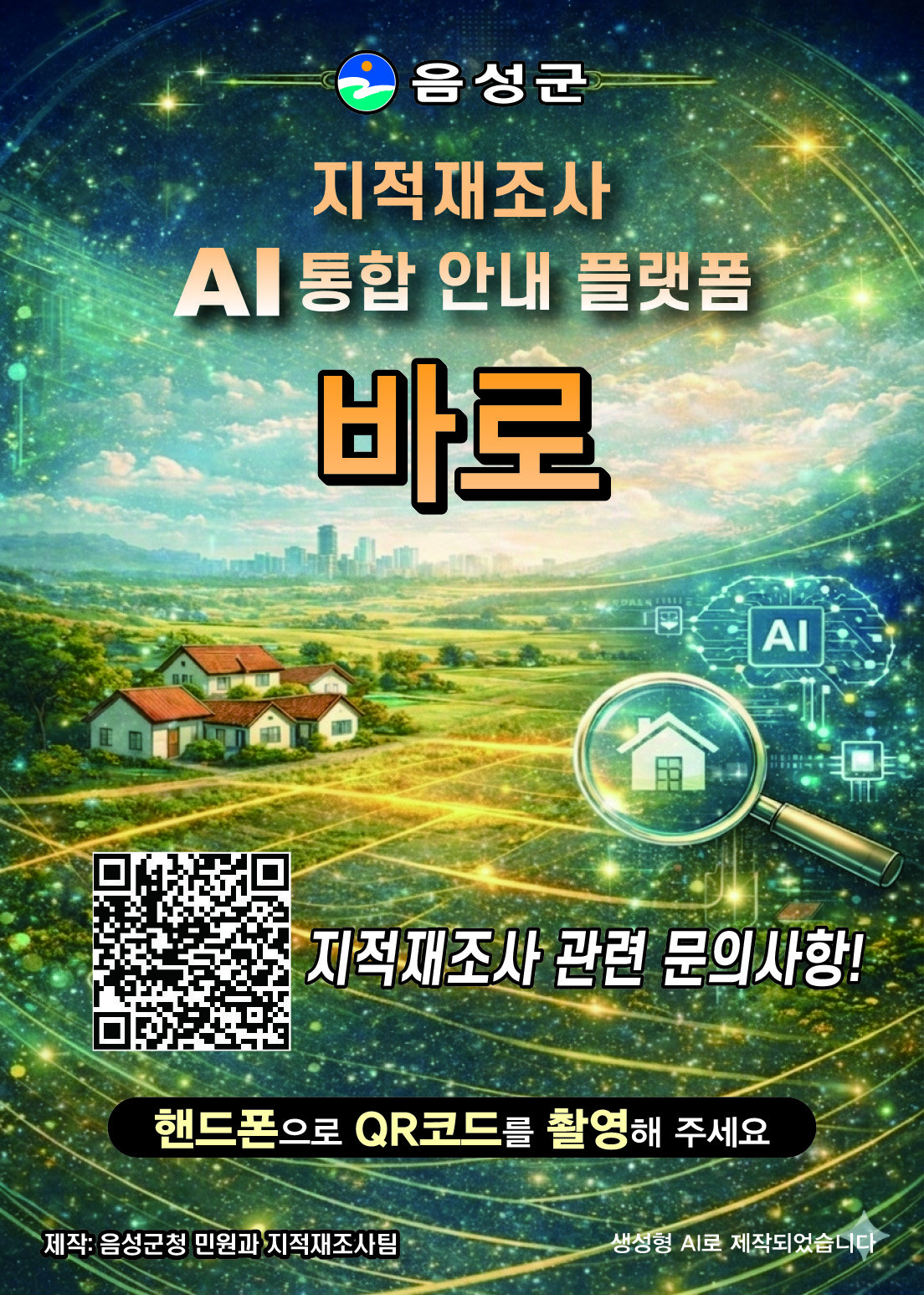 한편 군은 지난해 지적재조사에 대한 인식 개선을 위해 ‘AI 기반의 홍보송’을 제작 배포해 다양한 세대의 관심을 높이고 디지털 콘텐츠 중심의 소통 기반을 구축했다.