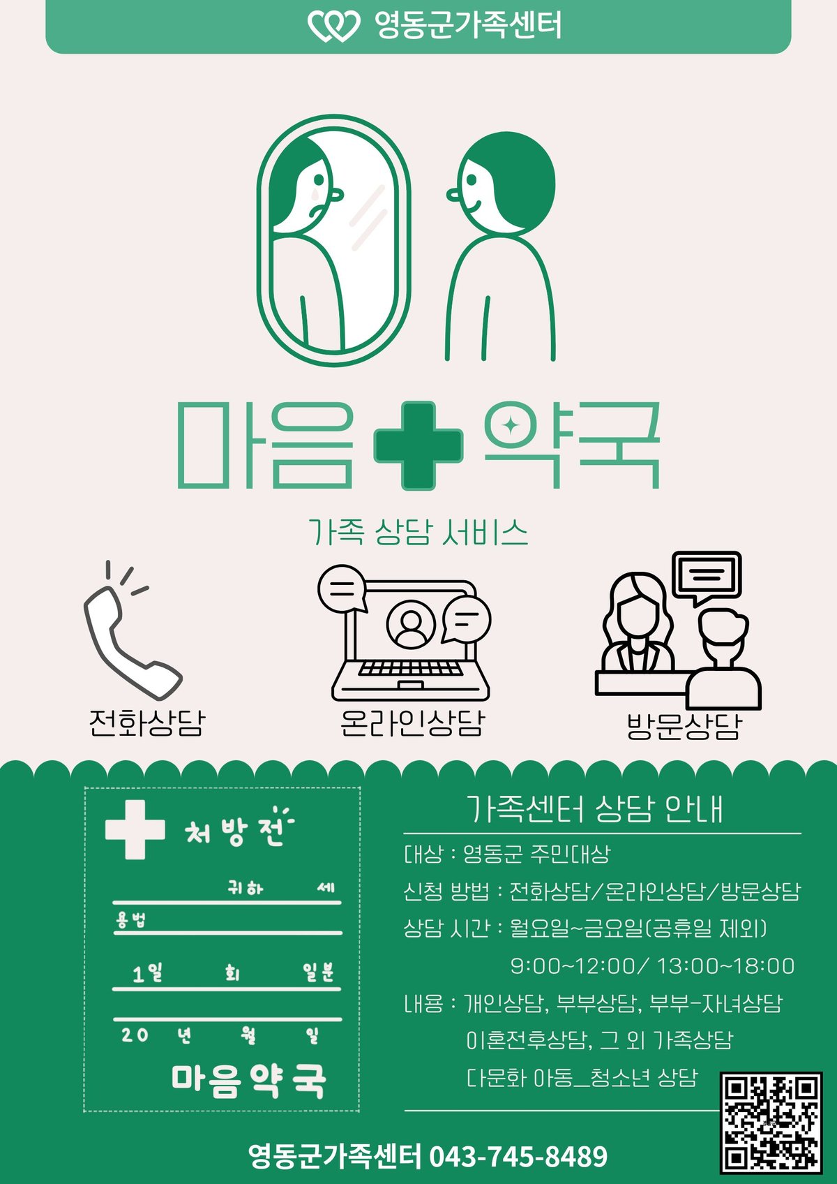 이번 상담서비스는 개인 및 가족이 겪는 다양한 문제를 전문적으로 지원하기 위해 마련됐으며 전화 온라인 방문 상담 등 다양한 방식으로 이용할 수 있어 접근성을 높였다.