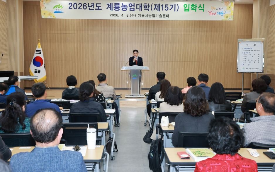 [충청중심뉴스] 충남 계룡시는 8일 농업기술센터 대강당에서 입학생과 관계자 등 60여명이 참석한 가운데 ‘제15기 계룡농업대학’입학식을 개최했다.