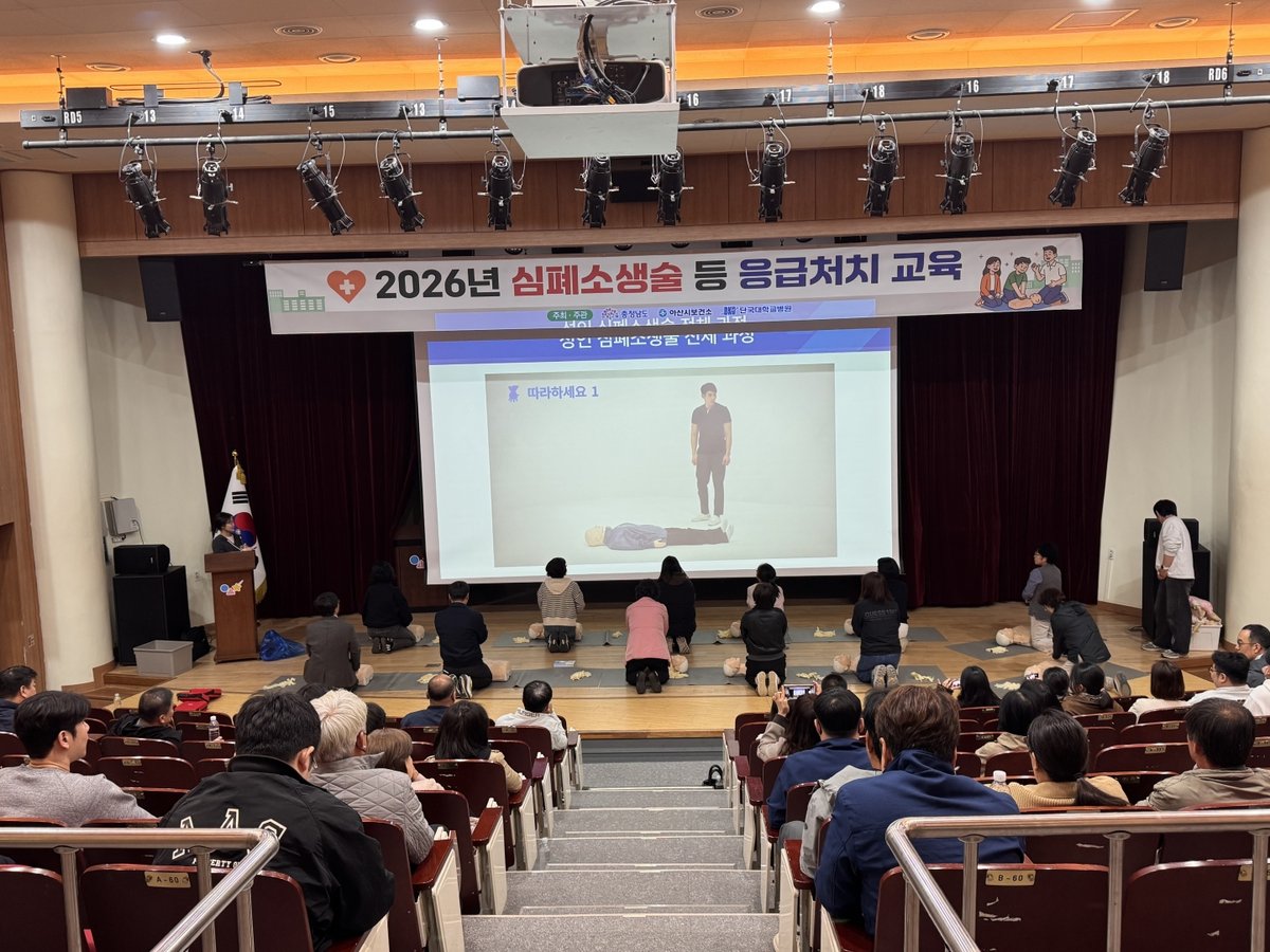 [충청중심뉴스] 아산시는 지난 7일과 8일 양일간 아산시 청소년교육문화센터에서 시민들의 응급상황 대응능력 향상과 심정지 환자의 생존율을 높이기 위한 2026년 심폐소생술 등 응급처치 교육을 실시했다.