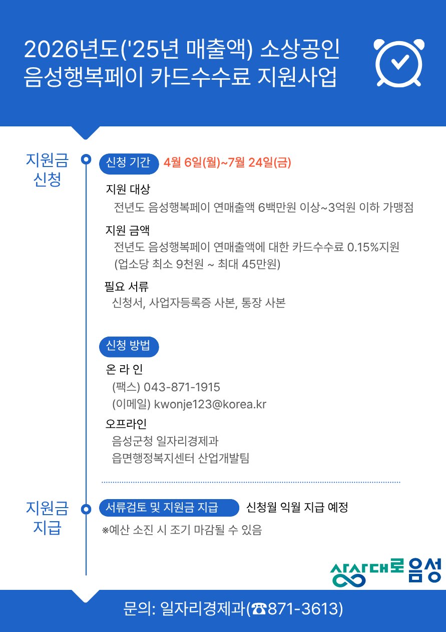 기타 자세한 사항은 음성군 일자리경제과로 문의하면 된다.