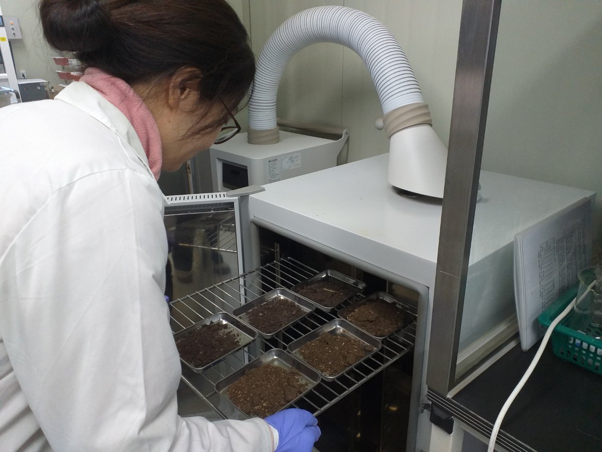 시료채취 시 잘 부숙된 퇴비더미 5곳에서 퇴비를 채취한 뒤 이물질을 제거한 후 골고루 섞어 시료봉투에 밀봉해야 하며 내용물의 변화가 없도록 가급적 채취 후 24시간 이내에 의뢰해야 한다.