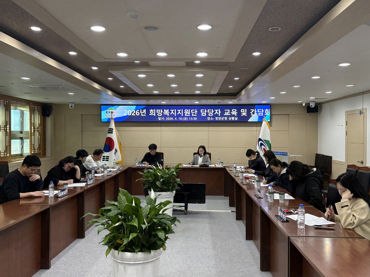 [충청중심뉴스] 청양군이 지난 10일 군청 상황실에서 읍·면 복지 담당자 및 지역사회보장협의체, 충남사회복지공동모금회 관계자 등 15명이 참석한 가운데 ‘2026년 희망복지지원단 주요사업 안내 및 역량 강화 교육’을 실시했다.