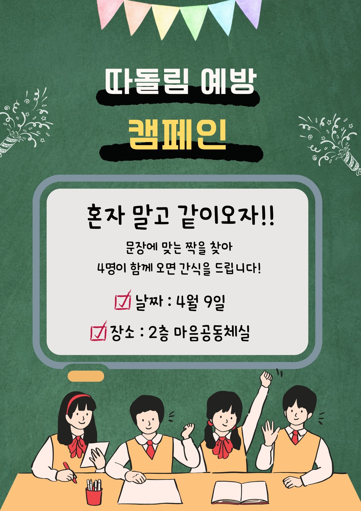 이번 캠페인은 학생 참여 중심의 활동을 통해 집단 따돌림 예방 의식을 높이고 학생 간 상호 존중과 배려 문화를 확산하기 위해 마련됐다.