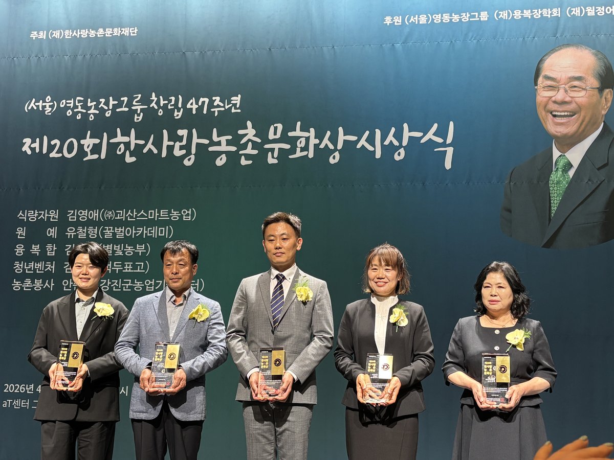 [충청중심뉴스] 충북 괴산군은 지난 16일 (재)한사랑농촌문화재단이 주관하는 ‘제20회 한사랑농촌문화상’을 괴산스마트농업 김영애 대표가 수상했다고 밝혔다.